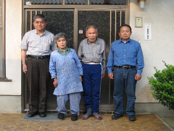 福岡県前原市にある 谷口家の前で ご両親と姉婿殿と妹婿殿